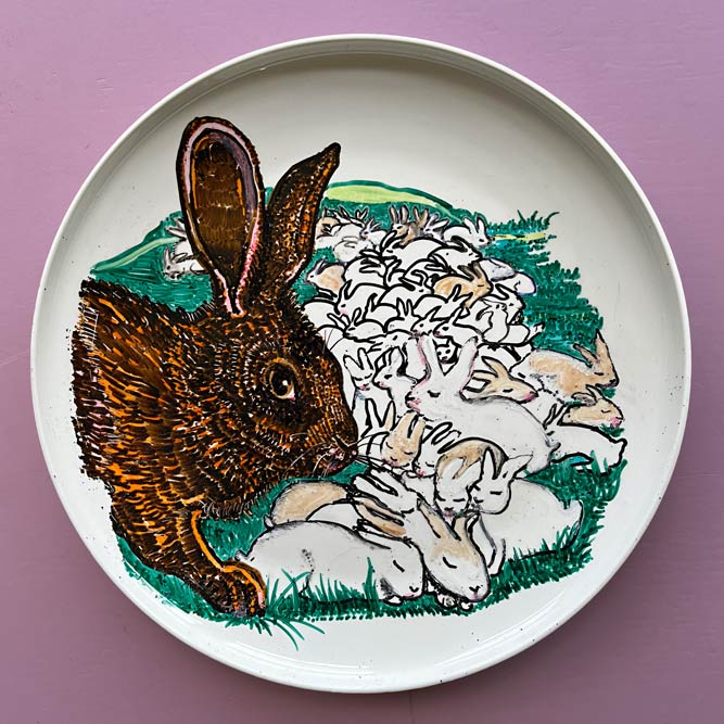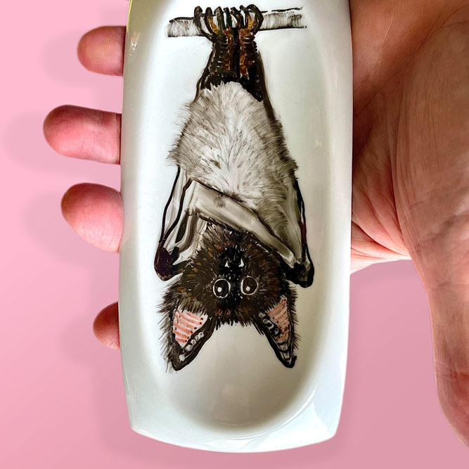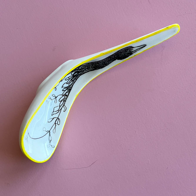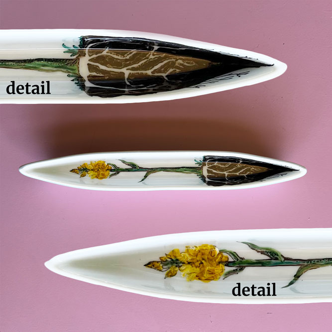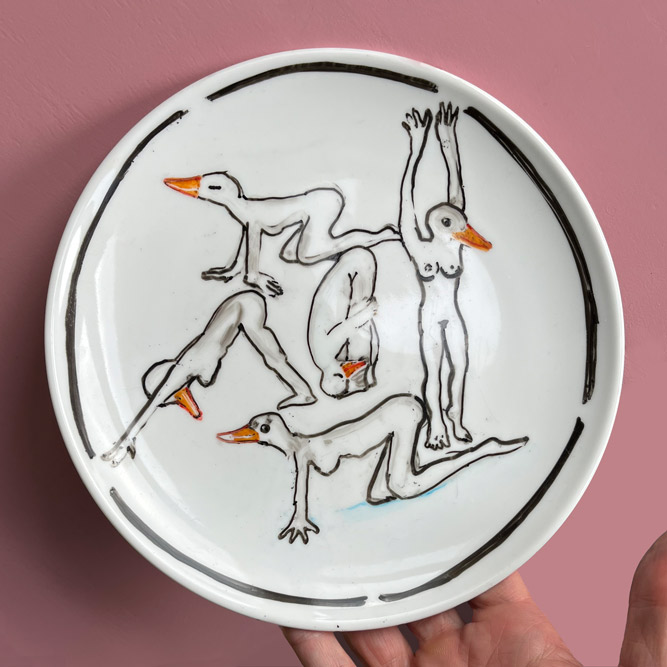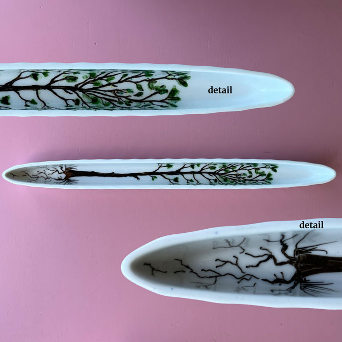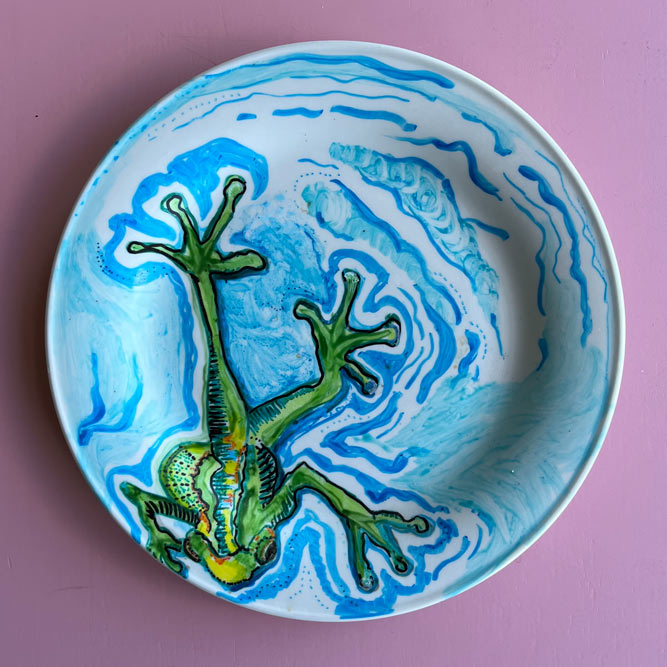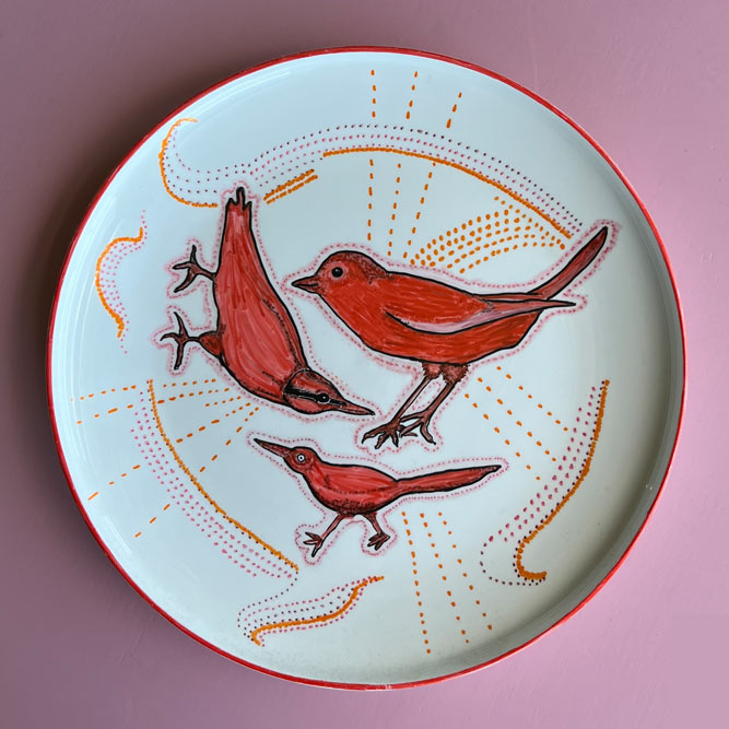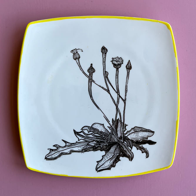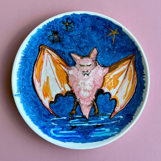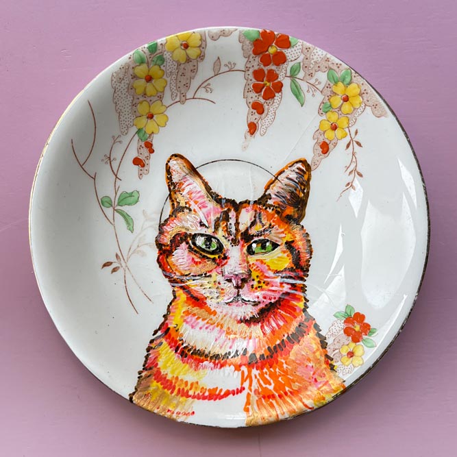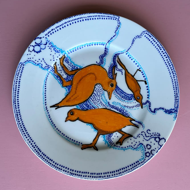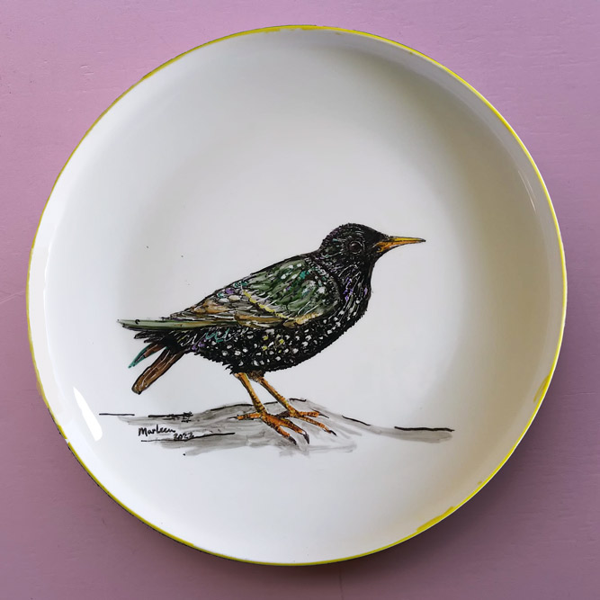Bij de kringloop of elders gevonden keramiek is met speciaal daarvoor geschikte stiften of verf versierd.