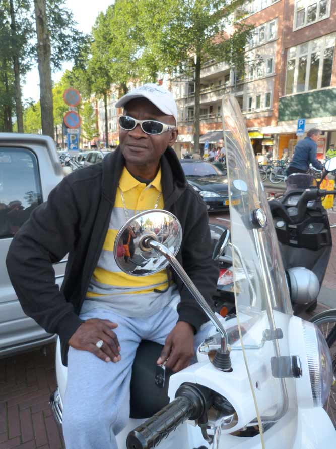 ‘Ik woon op de KNSM-Laan en kijk op de plek waar we ooit voor het eerst voet op Nederlandse bodem hebben gezet. We kwamen met een vracht- en passagierschip hierheen gevaren. We deden er een week over. Dit is nu mijn uitzicht, en heb daar fijne herinneringen aan.’