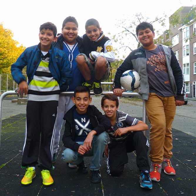 Voetballen is de hobby van deze vrienden uit groep 8. Ze zijn allemaal 11 jaar oud en geboren in Amsterdam-Oost.